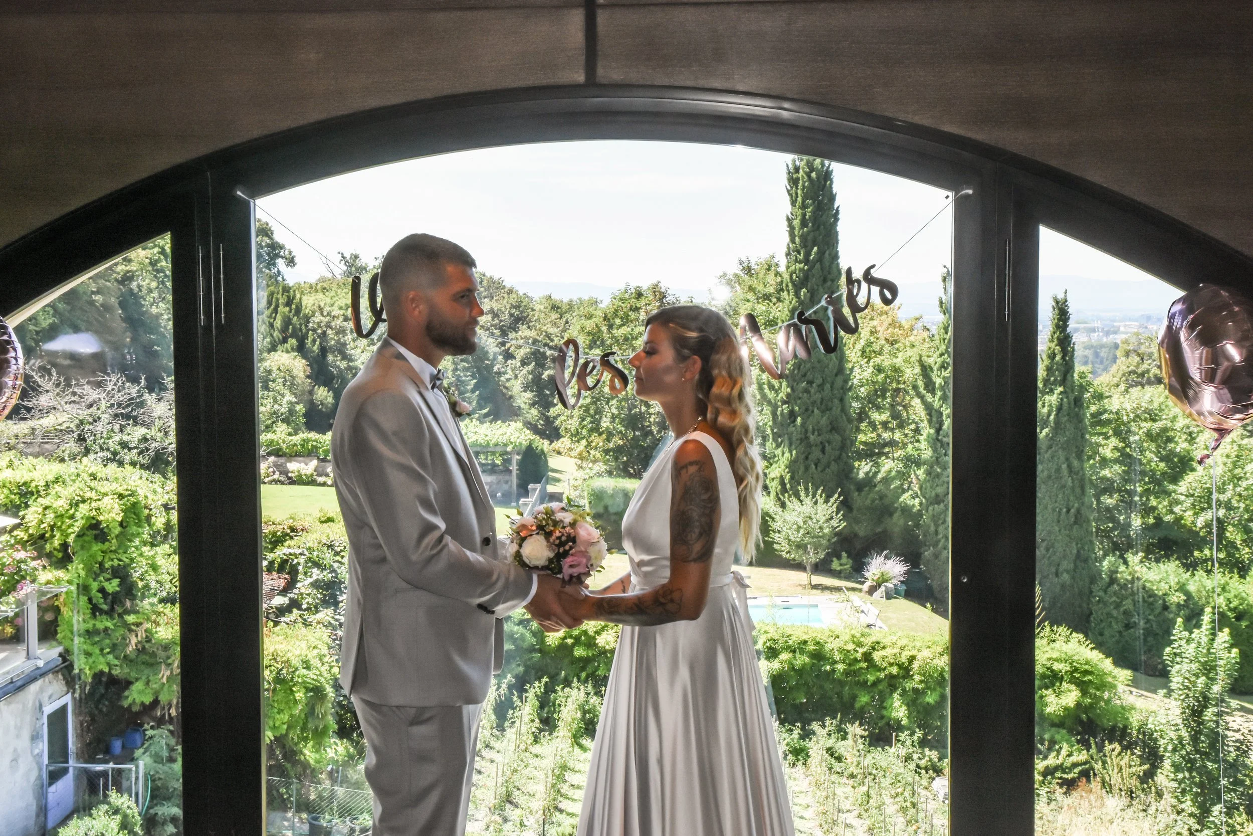 La cérémonie du mariage se déroula à la mairie de Cologny, puis une séance de photos de couple eut lieu dans le parc attenant.